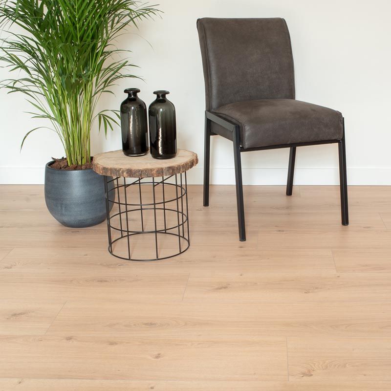 FLOER heeft een collectie ontwikkeld waarbij stijl en sfeervolle vloeren centraal staan. Een prachtig decor gecombineerd op een brede plank geeft de indruk van een eiken plank, maar dan met de voordelen van een laminaatvloer. De laminaatvloer is geschikt voor alle woonruimtes in uw huis. De FLOER vloer heeft een natuurgetrouw oppervlak met voelbare houtstructuren die de vloer nog meer uitstraling geeft. Daarnaast is de vloer ook nog eens